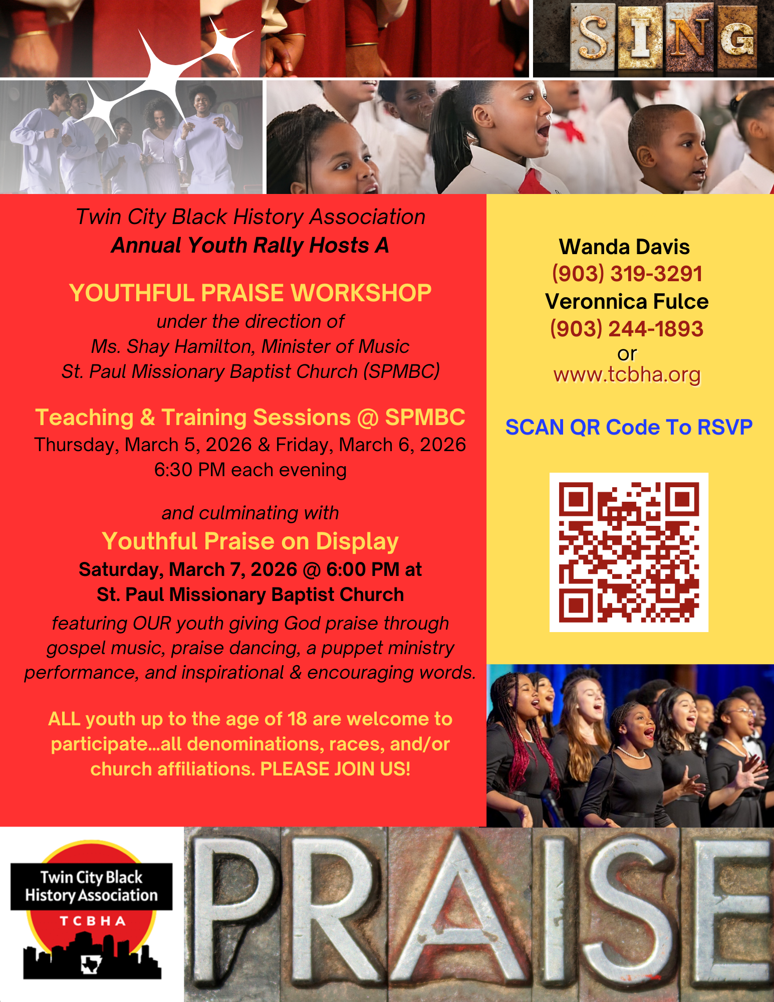 Youthful Praise Workshop under the direction of Ms. Shay Hamilton, Minister of Music, St. Paul Missionary Baptist Church. Culminating a Youthful Praise on Display: ***Saturday, Mar 8, 2025 @ 6:00 PM